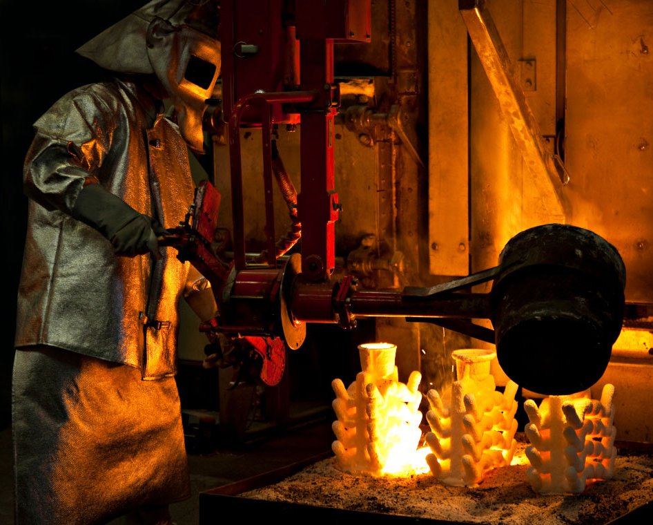 Molten wax is injected into metal dies to create accurate wax patterns.